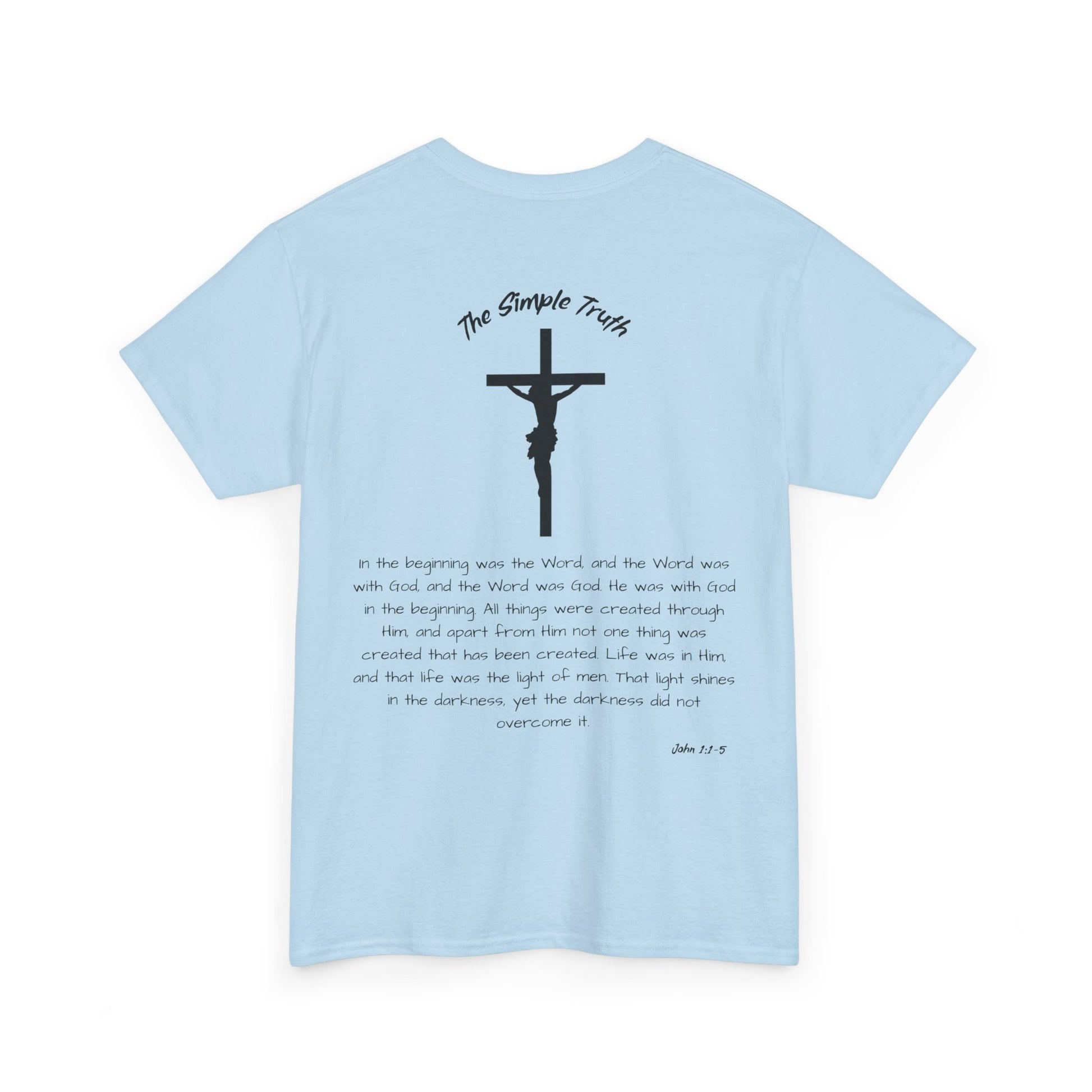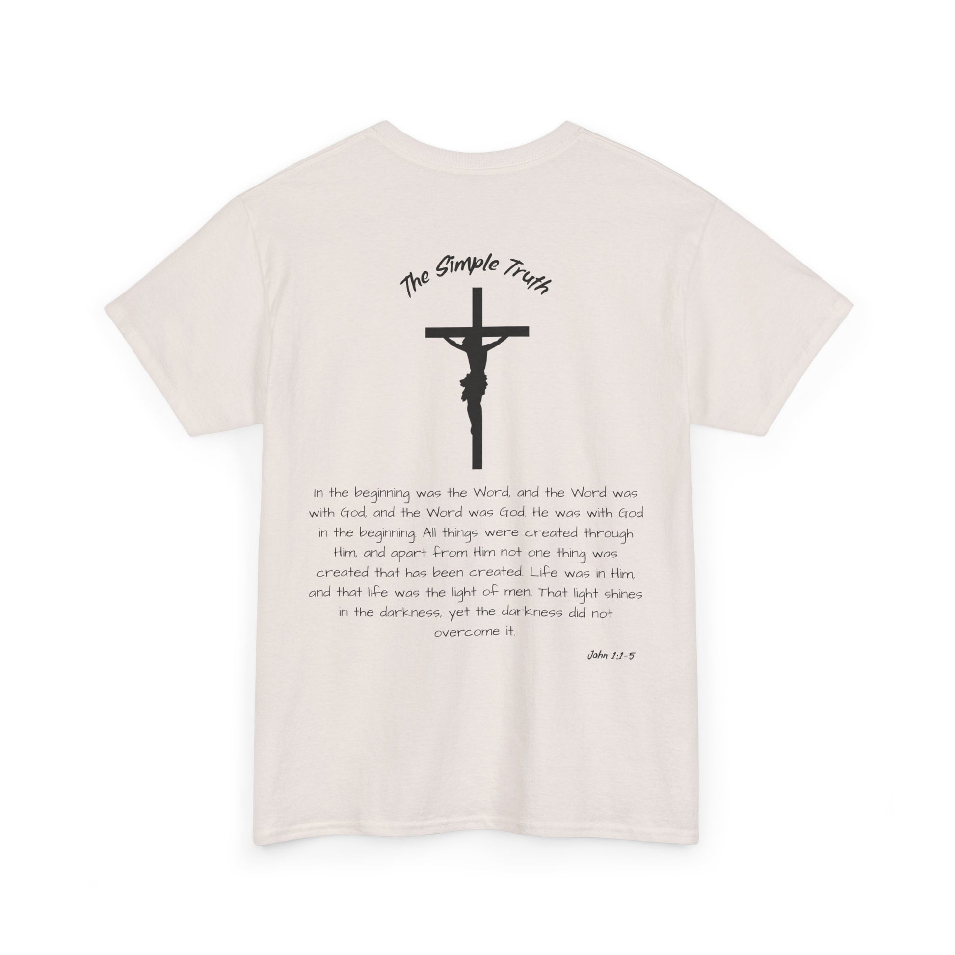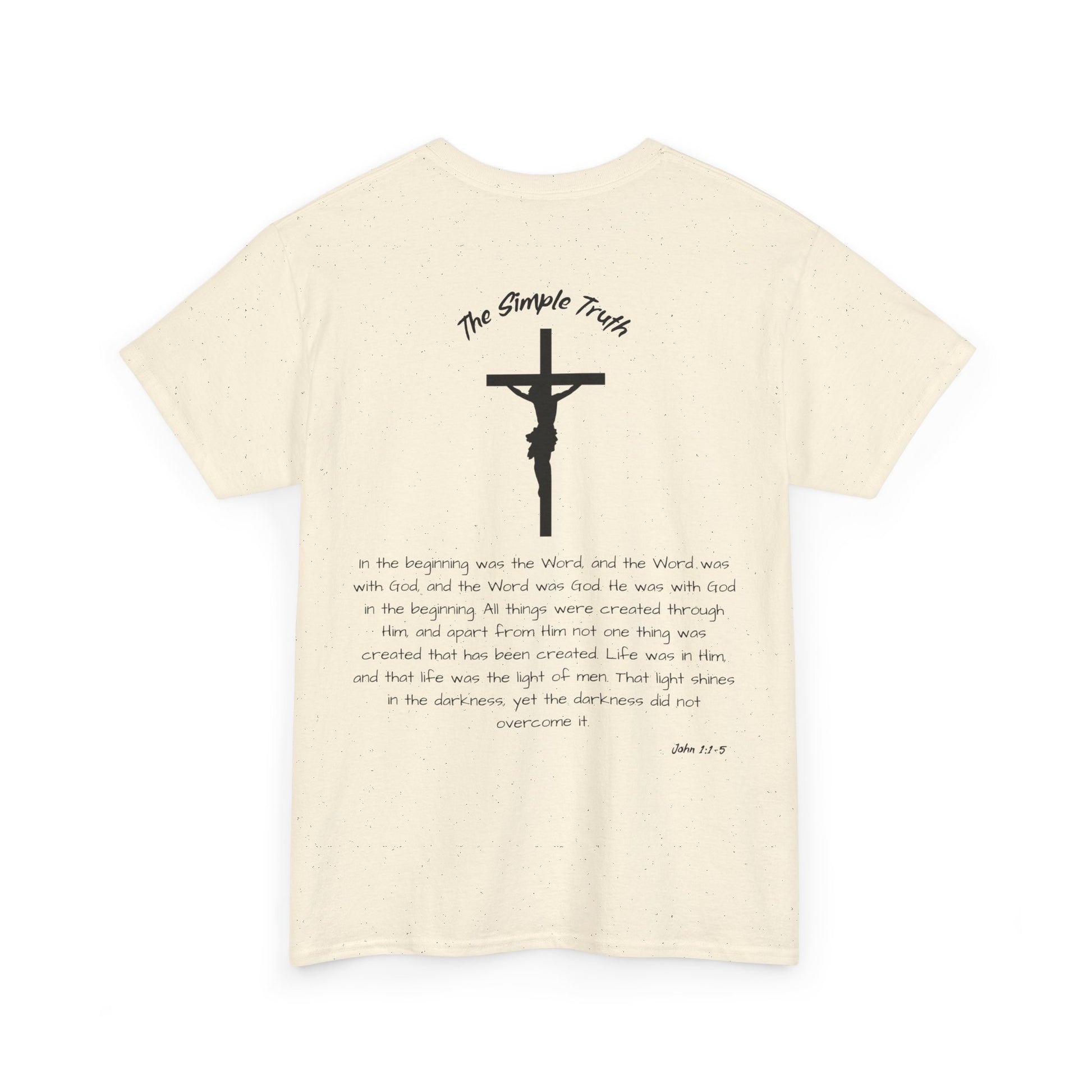 John 1:1-5 Black Print Bible Verse Unisex Heavy Cotton Shirt - From "The Simple Truth" Collection