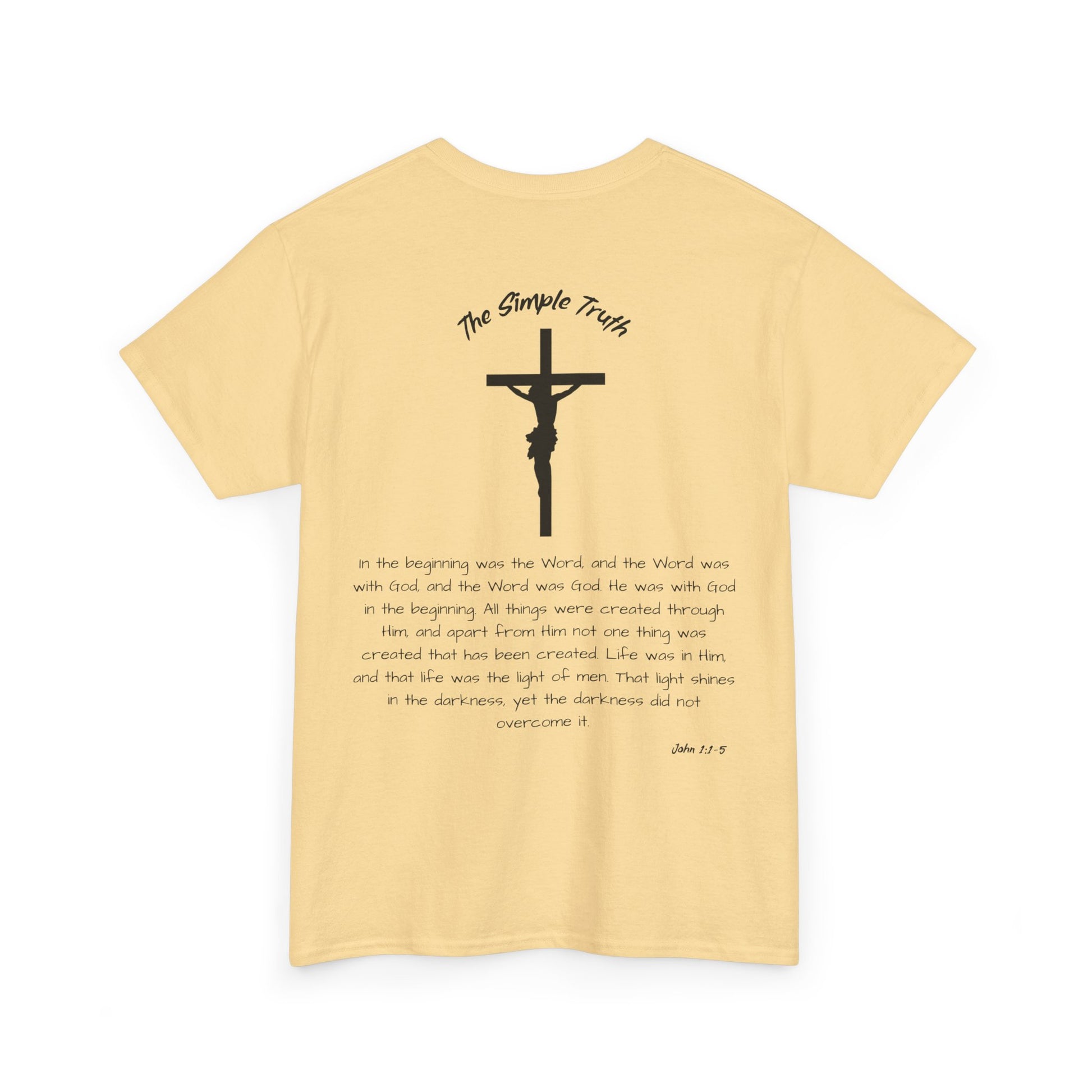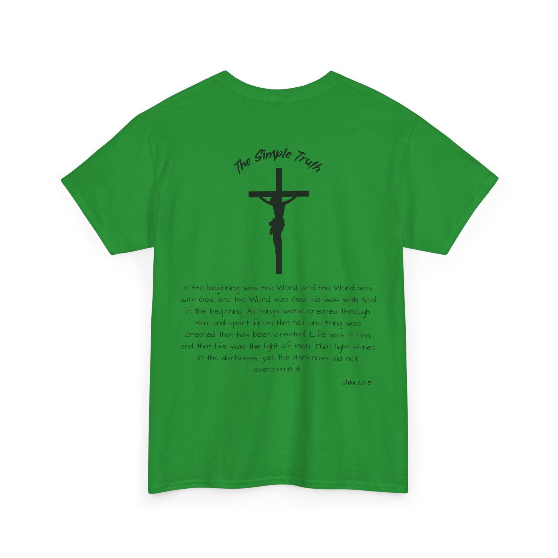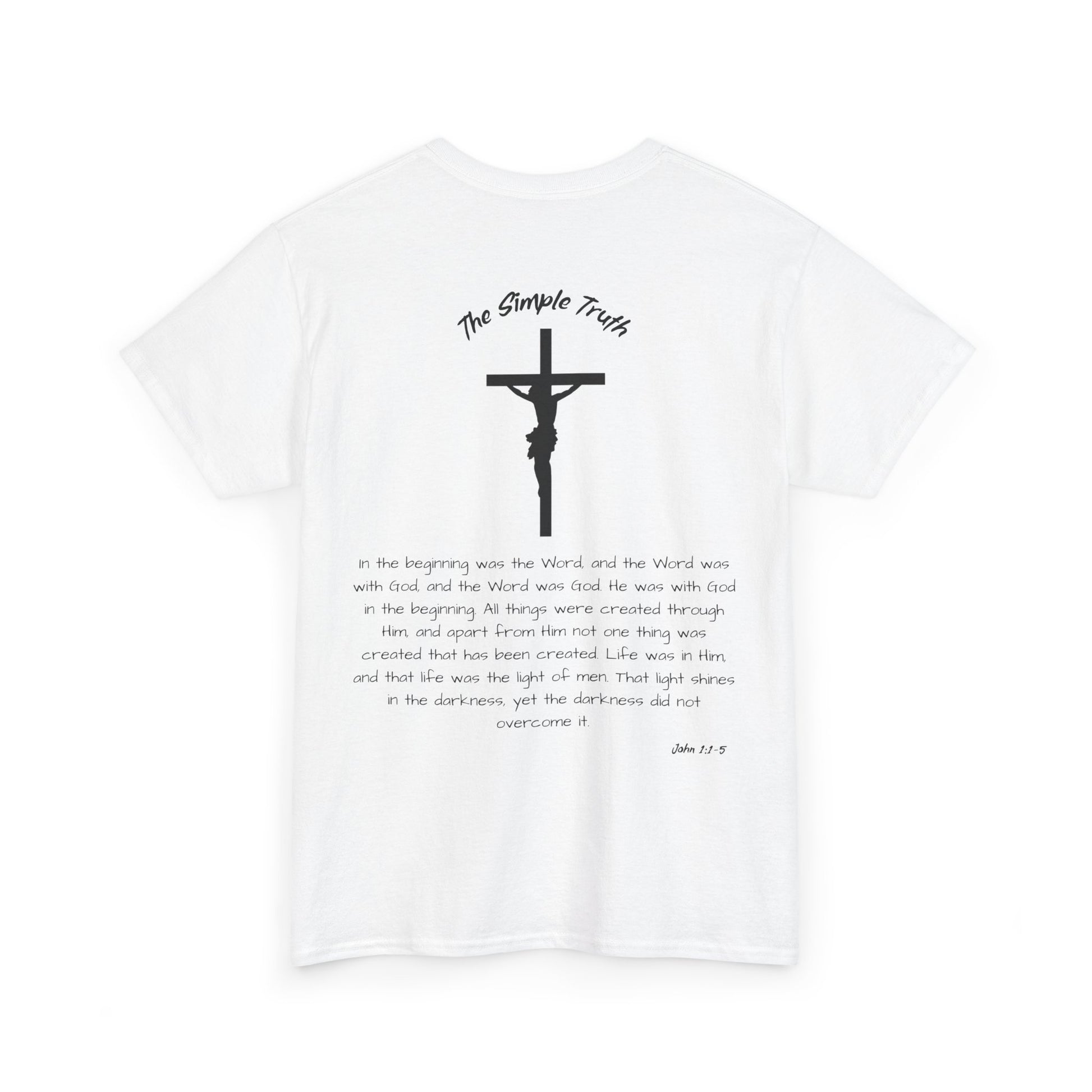 John 1:1-5 Black Print Bible Verse Unisex Heavy Cotton Shirt - From "The Simple Truth" Collection