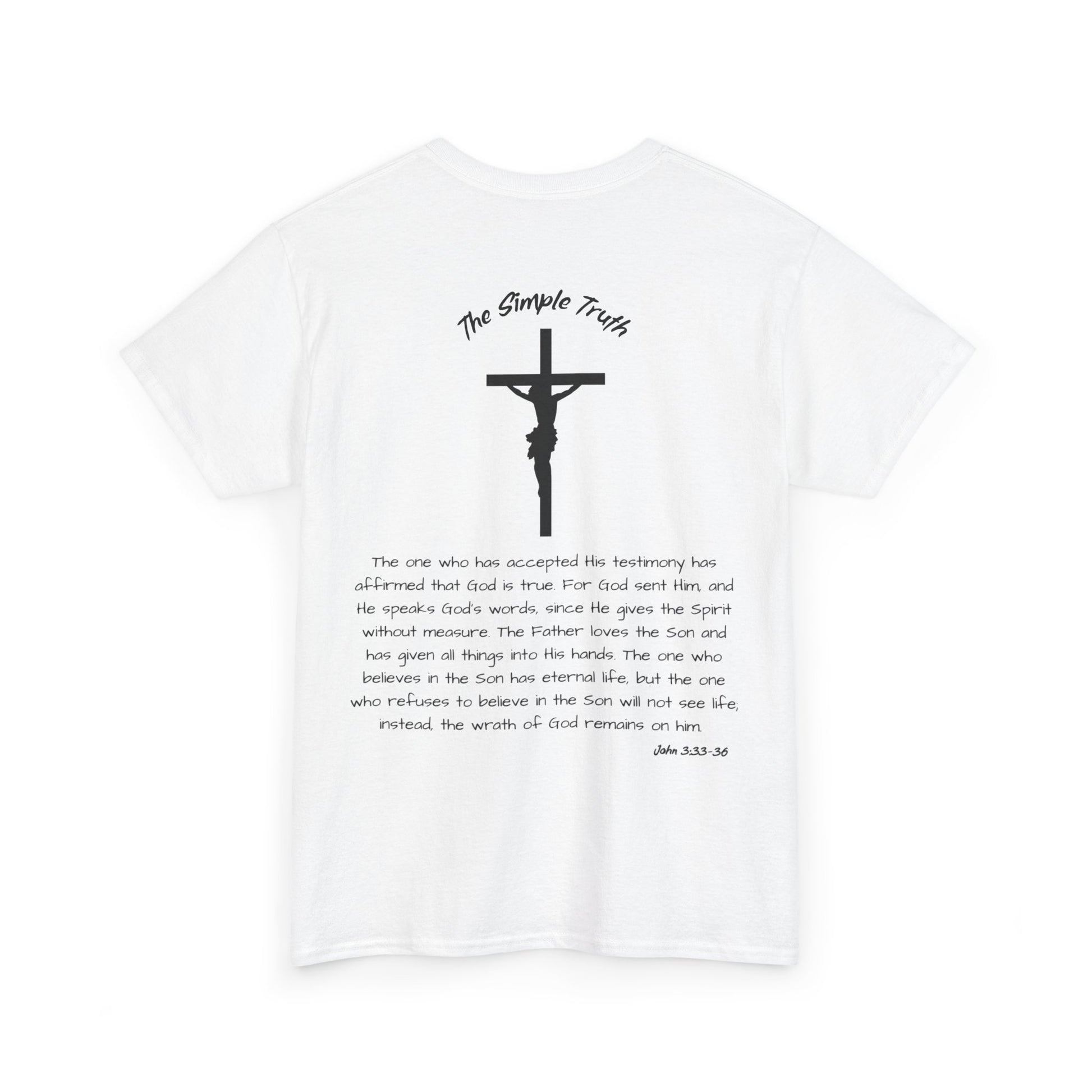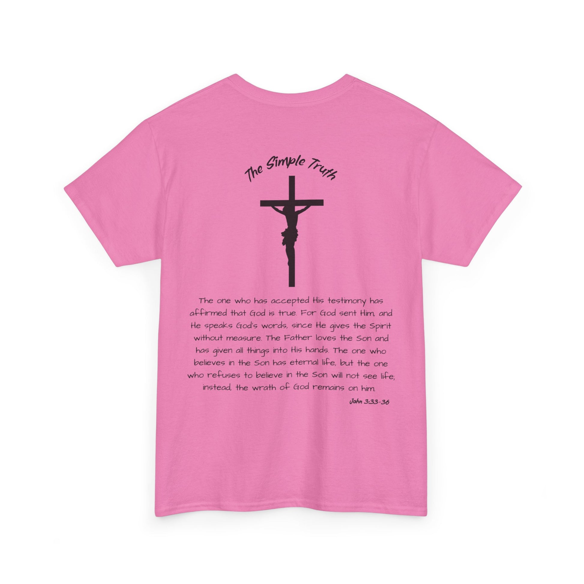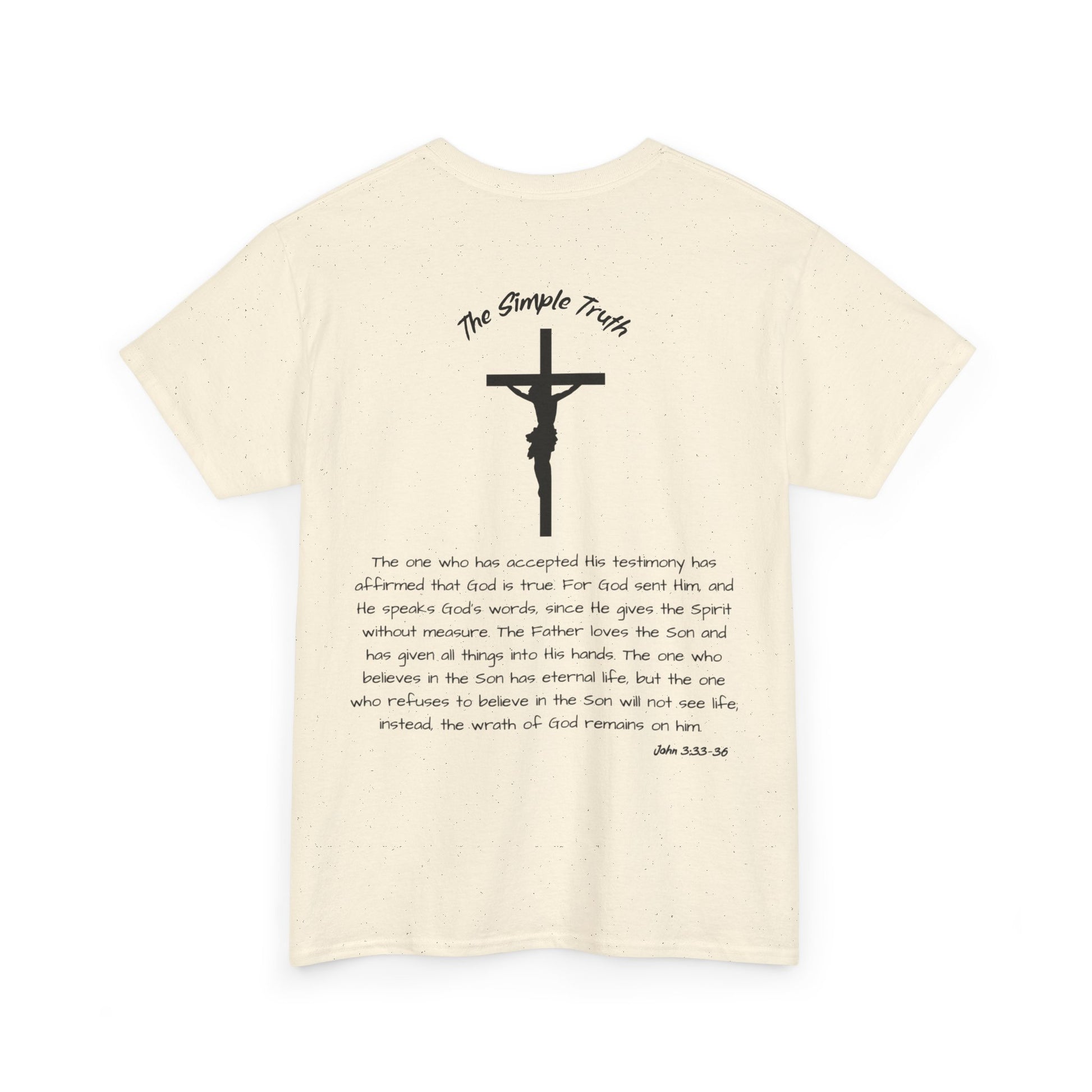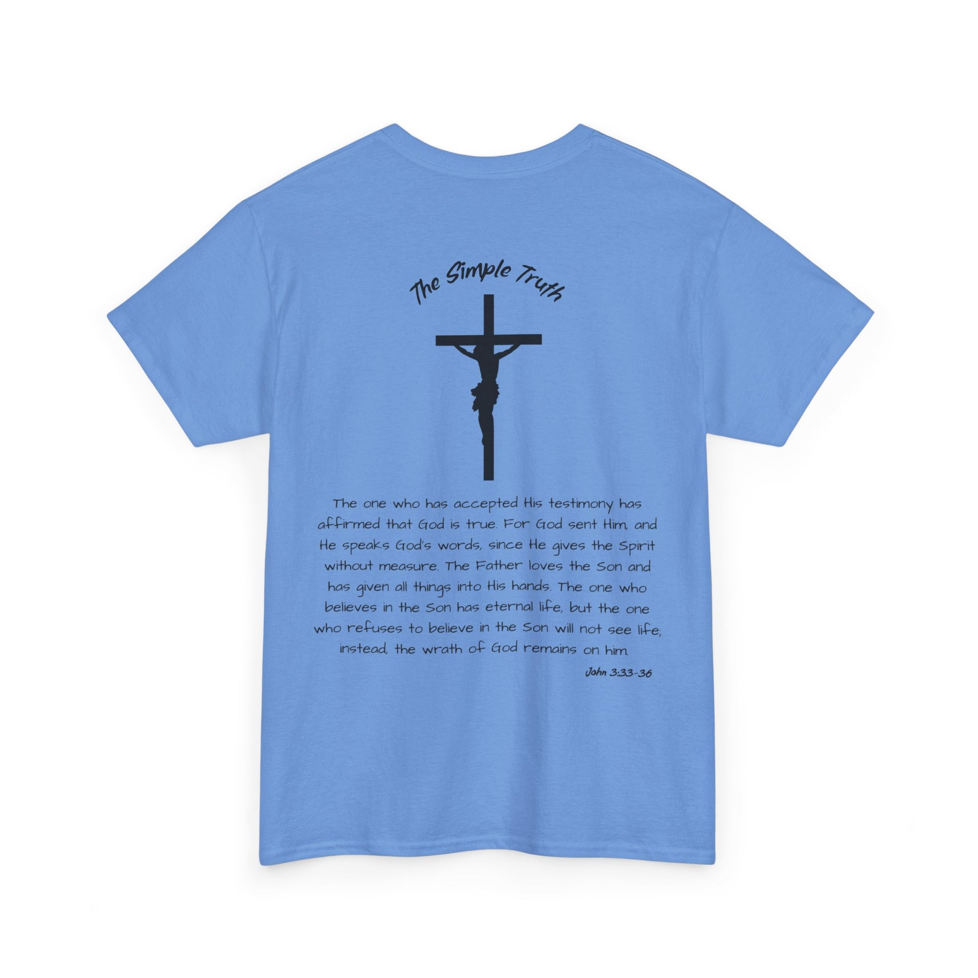 John 3:33-36 Black Print Bible Verse Unisex Heavy Cotton Shirt - From "The Simple Truth" Collection