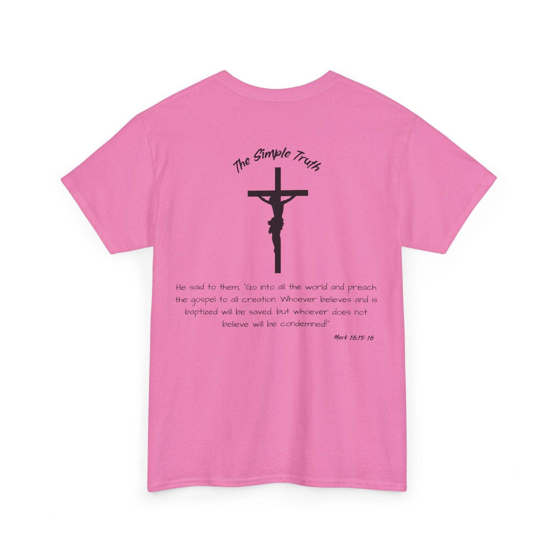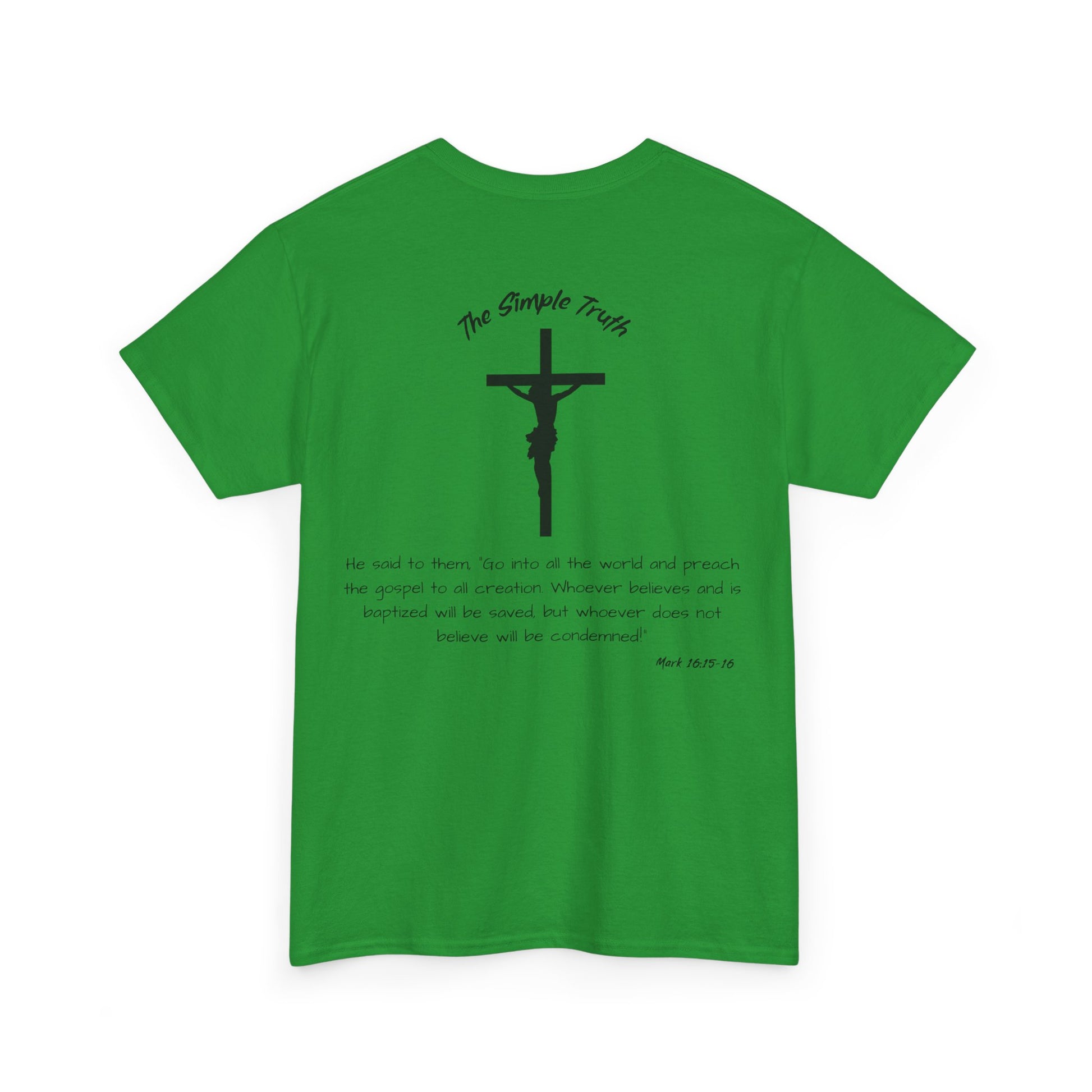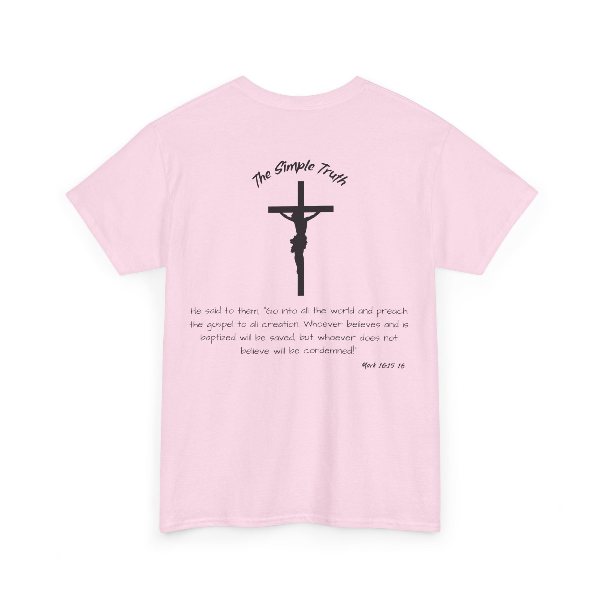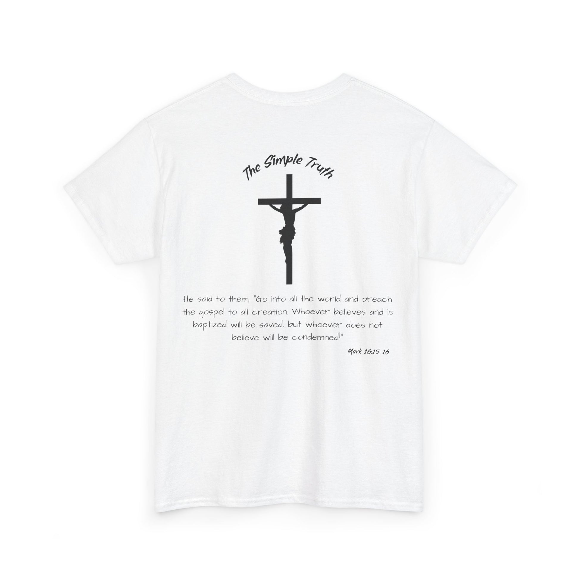 Mark 16:15-16 Black Print Bible Verse Unisex Heavy Cotton Shirt - From "The Simple Truth" Collection