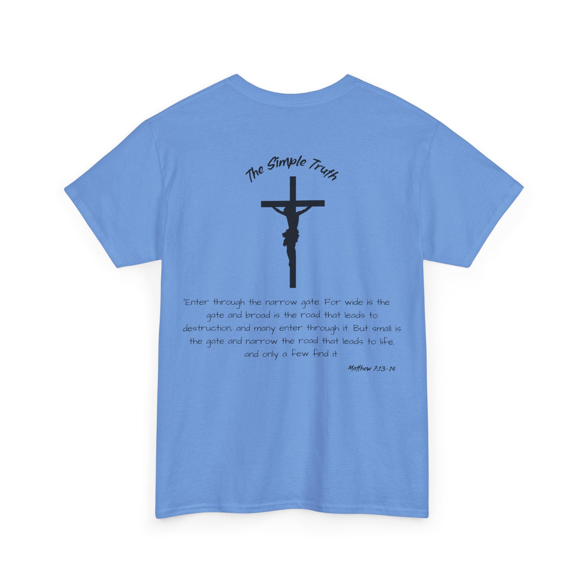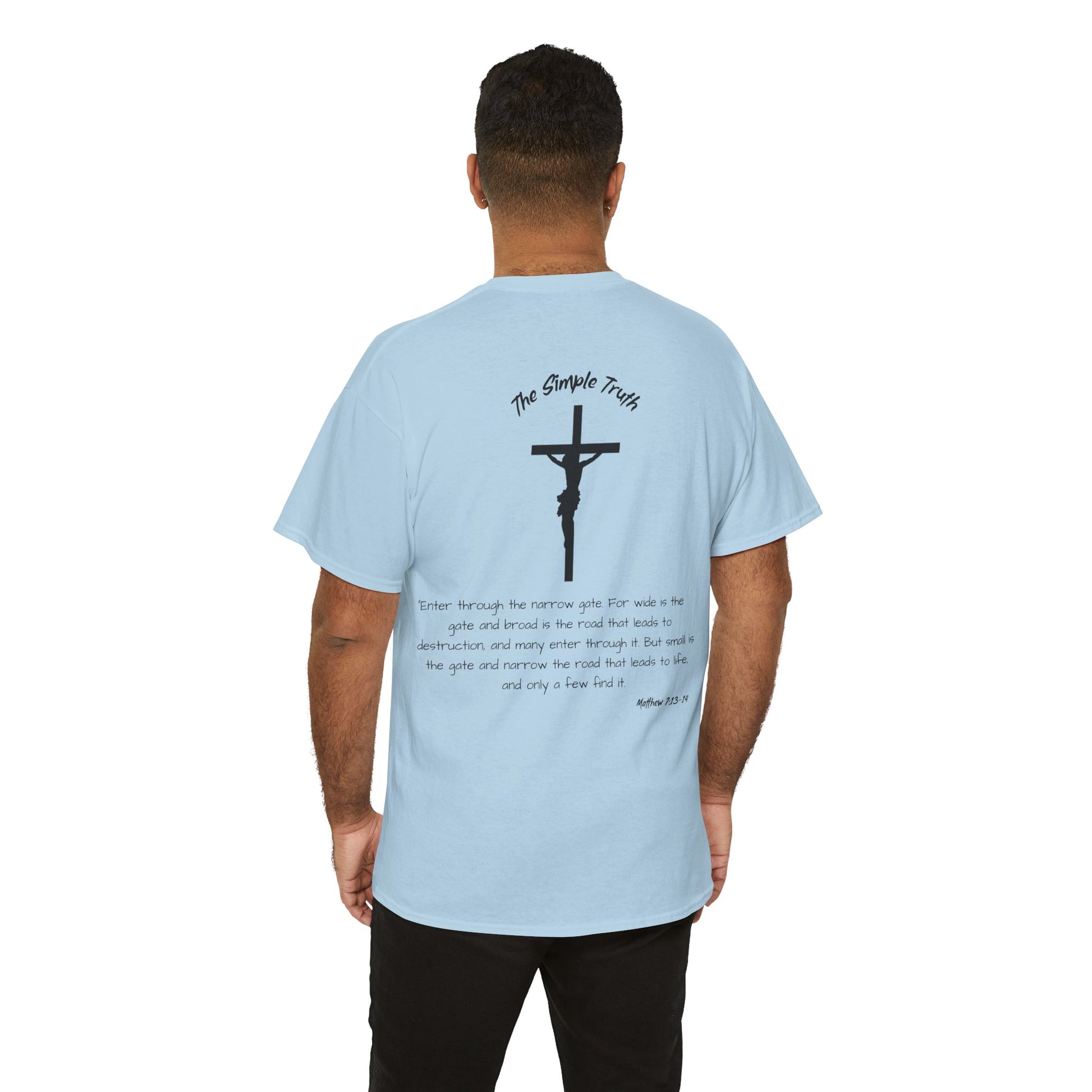 Matthew 7:13-14 Black Print Bible Verse Unisex Heavy Cotton Shirt - From "The Simple Truth" Collection